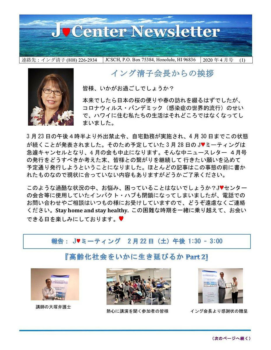 Newsletter: April 2020 ニュースレター: 2020年 4月号